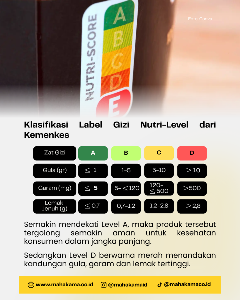 Nutri-Level merupakan sistem pelabelan gizi berbasis tingkat yang memudahkan konsumen memahami kandungan nutrisi secara cepat dan akurat. Sistem ini menggunakan empat level utama yaitu A hingga D yang menyertakan kode warna berbeda bagi setiap produk.